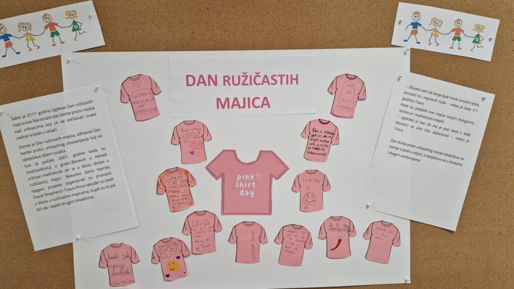 Posljednje srijede u veljači obilježavamo Dan ružičastih majica kojim se na simboličan način želi skrenuti pozornost na problem sve učestalijega vršnjačkog nasilja u školama. Hrvatski sabor je 2017. godine proglasio taj dan Nacionalnim danom borbe protiv vršnjačkog nasilja.