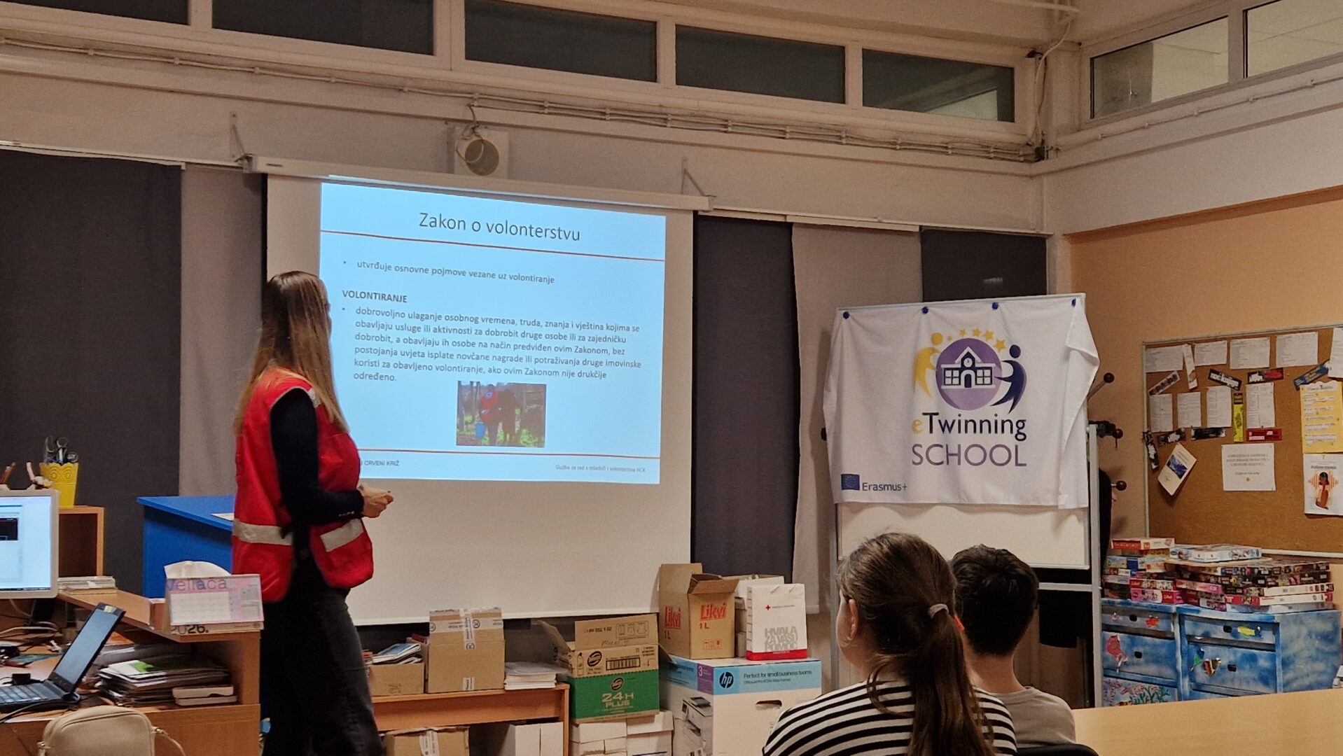 U utorak, 24. veljače, Vijeće učenika naše škole posjetile su ravnateljica CK Knin Anđelka Balić i Nikolina Bošnjak. Učenicima su predstavile osnove volontiranja, osnovna načela Crvenog križa i načine kako oni mogu sudjelovati u volonterskim akcijama.